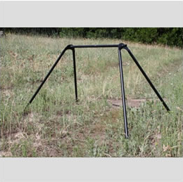 Swinging Gong Stand, is made from .095″ x 1″ round steel tubing, it sits 28″ tall holding even the large 16″ square plates approximately 8″ off ground, giving plenty of room to swing. Can be used with our square shooting plates or our gong plates. Its legs stand 29″ wide from front to back and 53″ from side to side giving plenty of stability. Just bolt legs to top hanger and slide top bar into hanger, comes with powder coated finish. Can be used by pistol or rifle shooters.