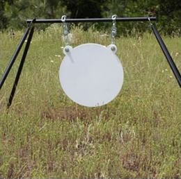 3/8″ x 10″ AR550 Gong with our Swinging Gong Stand for rifle shooters
